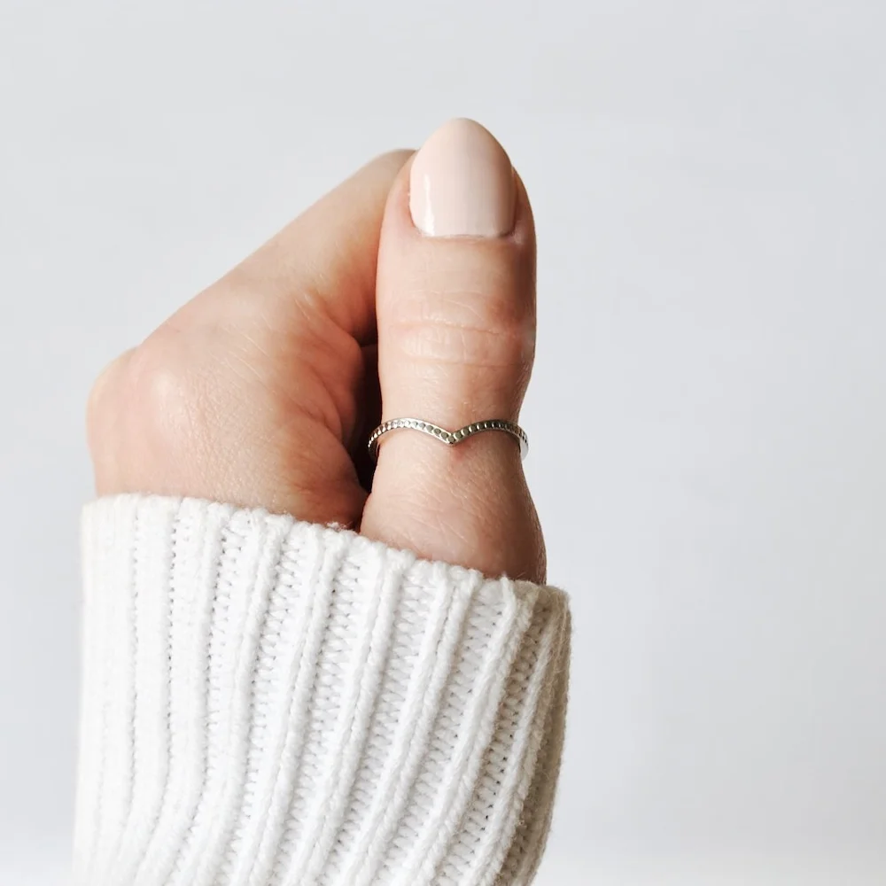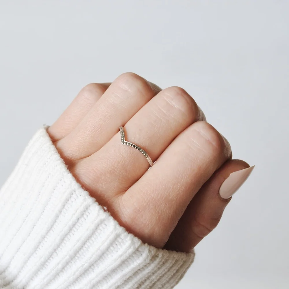 Entdecke unseren filigranen Bergspitzen Ring aus Edelstahl – ein zartes Schmuckstück mit Symbolkraft. Das schlichte, aber besondere Design verläuft vorne elegant in eine spitz zulaufende Form, die an eine Bergsilhouette erinnert. Feine, eingravierte Punkte auf der Vorderseite unterstreichen die besondere Optik dieses Rings und machen ihn zu einem stilvollen Begleiter für jeden Tag.